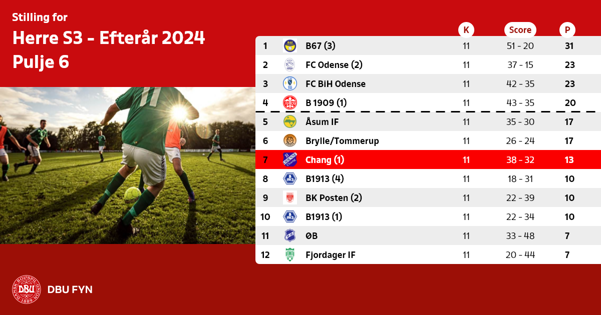 05.08.24: FC Odense (1) overført til pulje 5. FC Odense (2) overført fra pulje 5.