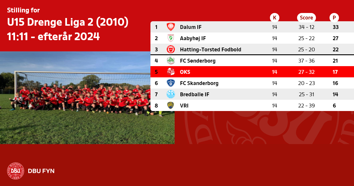 U15 Drenge Liga 2 (2010) 11:11 - efterår 2024
