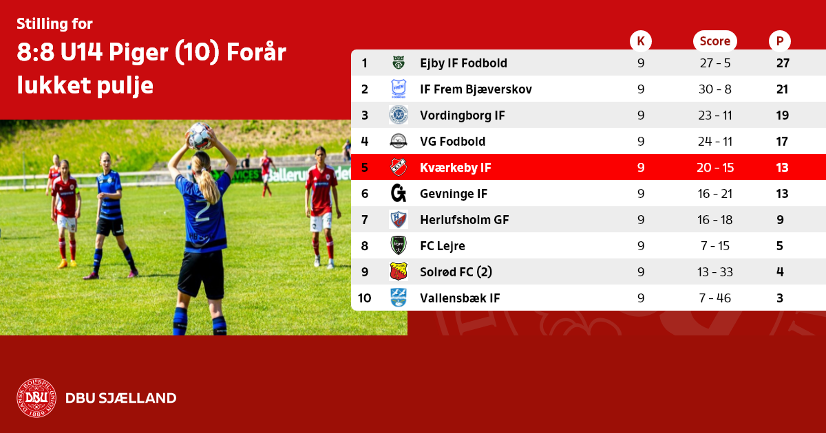 8:8 U14 Piger (10) Forår, lukket pulje