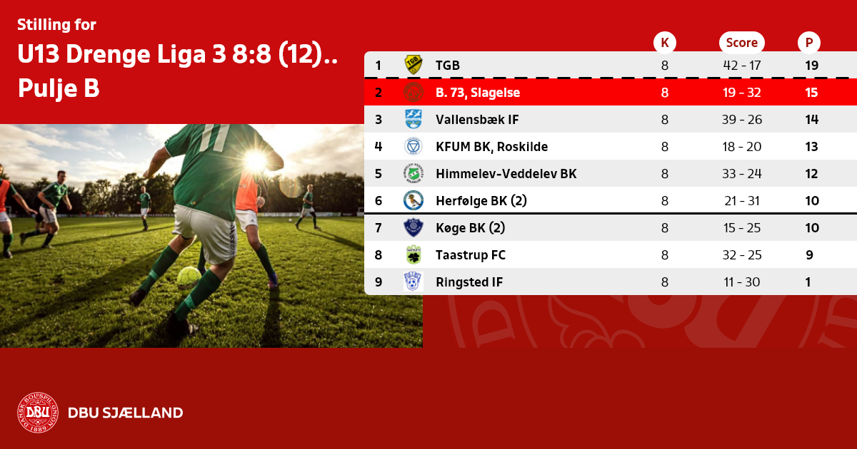 Nummer 7-11 i pulje A og B spiller U13 drenge Liga 3 Pulje B i foråret 2025.