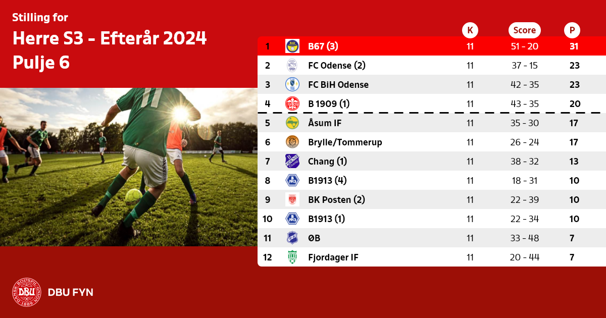 05.08.24: FC Odense (1) overført til pulje 5. FC Odense (2) overført fra pulje 5.