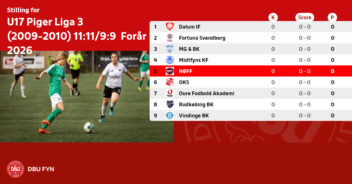 U17 Piger Liga 3 (2009-2010) 11:11/9:9 Forår 2026