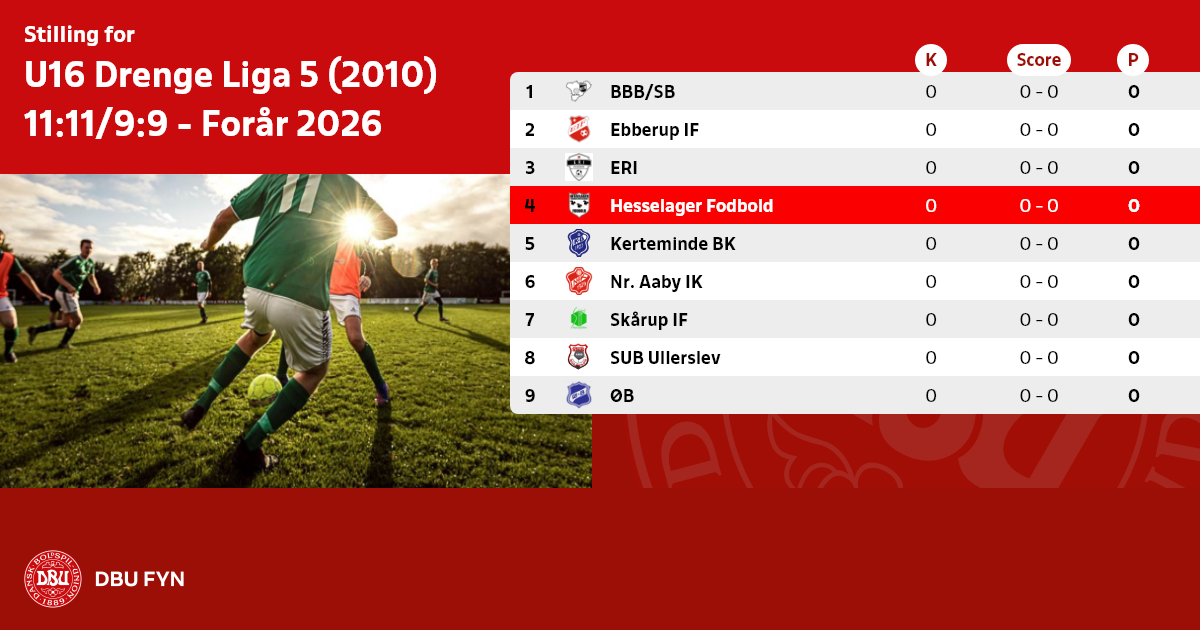 U16 Drenge Liga 5 (2010) 11:11/9:9 - Forår 2026