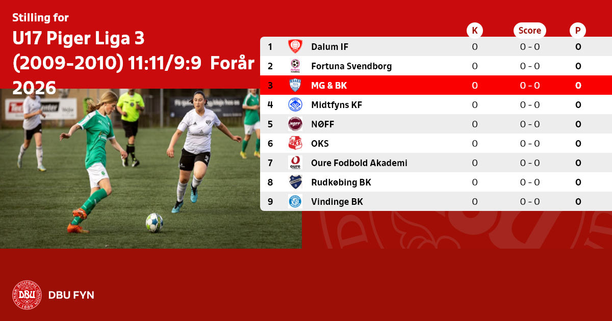 U17 Piger Liga 3 (2009-2010) 11:11/9:9 Forår 2026