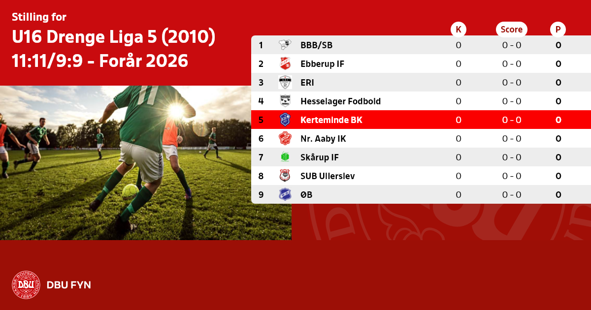 U16 Drenge Liga 5 (2010) 11:11/9:9 - Forår 2026