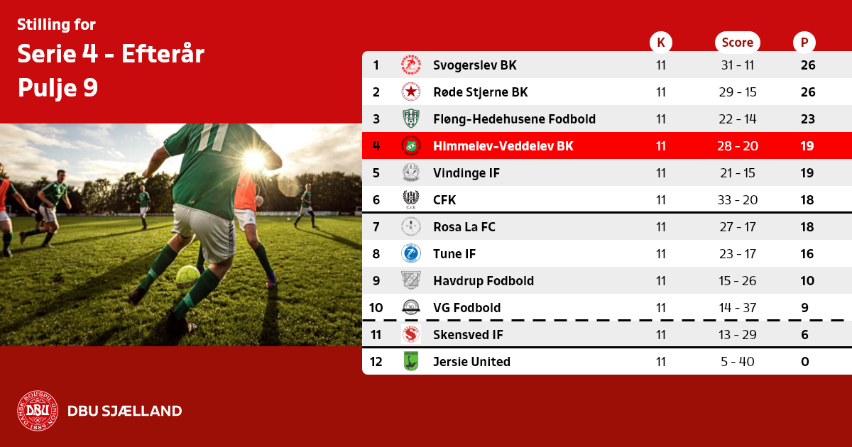 Nr. 12 samt de 8 dårligste 11´ere rykker ned i forårets Serie 5