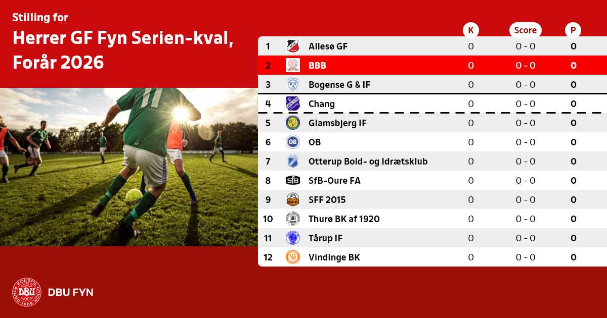 Herrer GF Fyn Serien-kval, Forår 2026