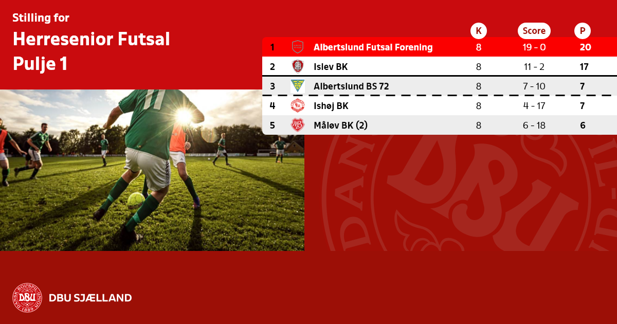 Nummer 1 og 2 i Futsal A rækken rykker op i Futsal Sjællandsserien.