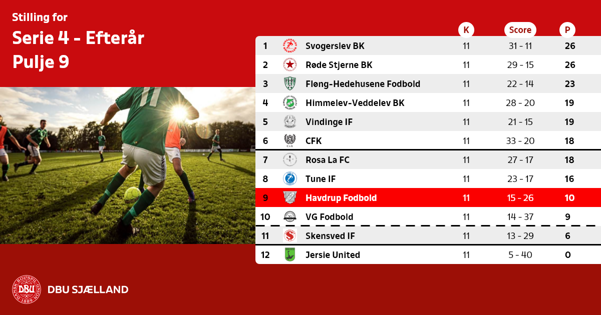 Nr. 12 samt de 8 dårligste 11´ere rykker ned i forårets Serie 5
