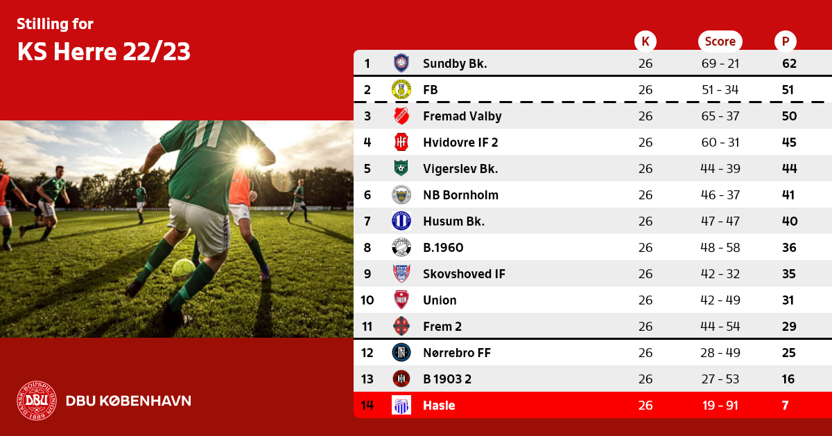 Nr. 12,13 og 14 rykker ned fra Københavnsserien