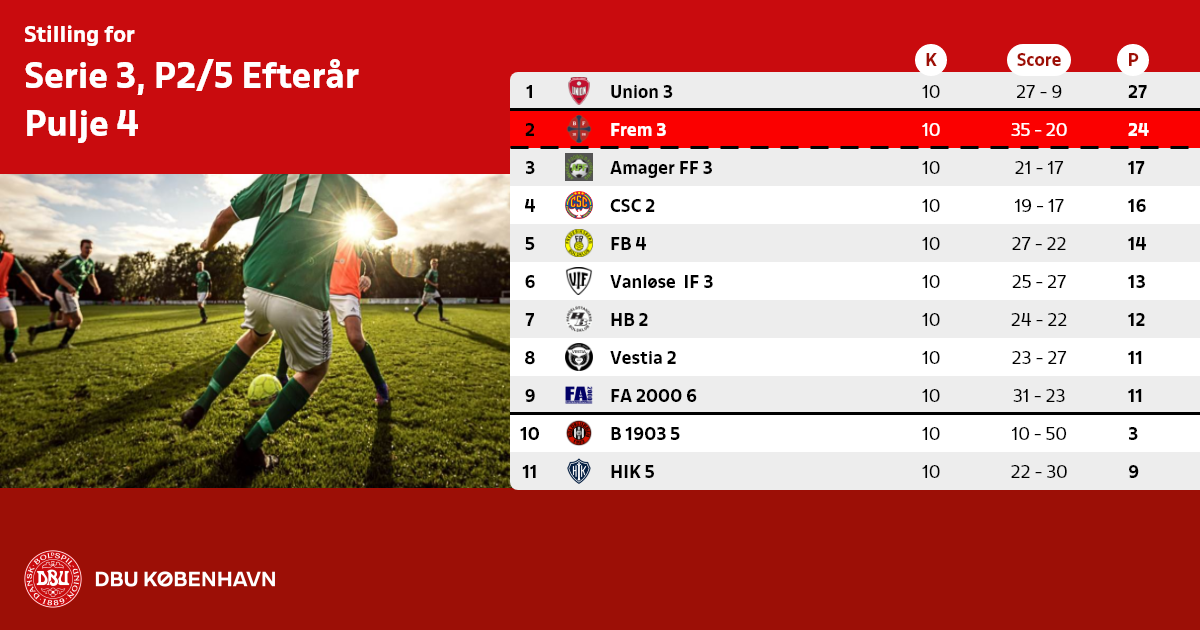 Spørgsmål omkring denne række skal rettes til DBU København på mail eller på tlf: 3927 7144