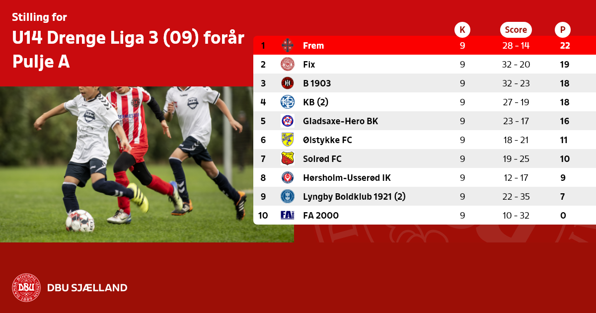 U14 Drenge Liga 3 (09) forår, Pulje A