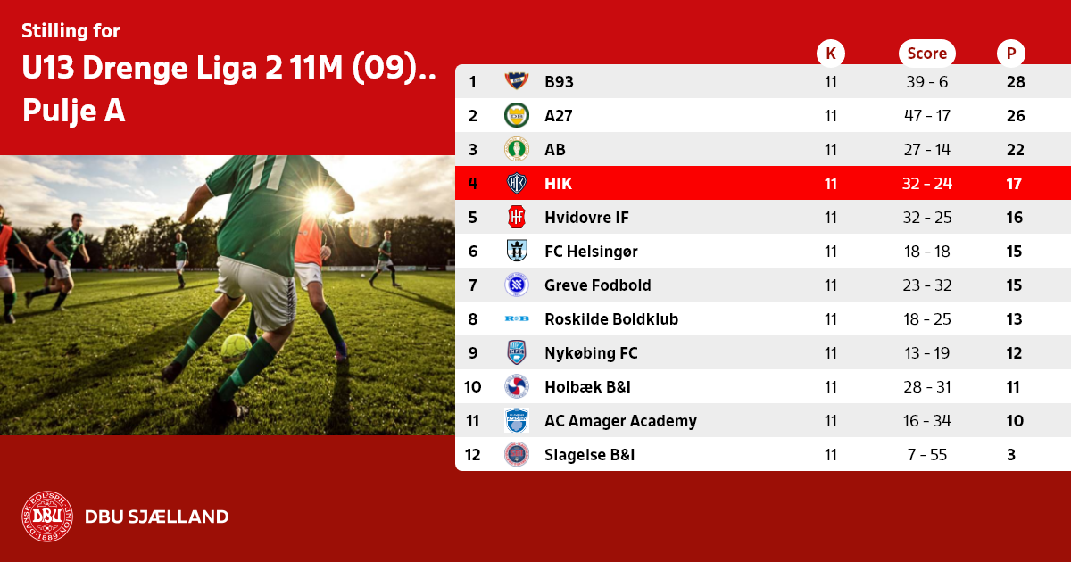 U13 Drenge Liga 2 11M (09) forår, Pulje A