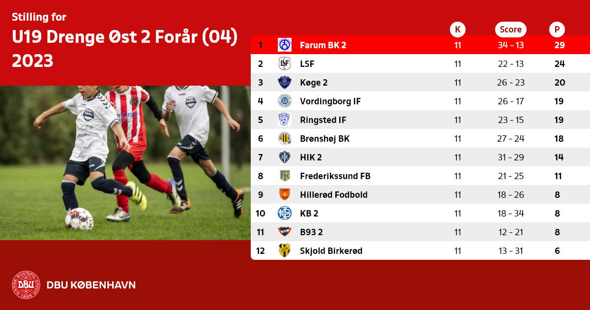 Husk hjemmekampe i weekenderne for hold under DBU København spilles på tiderne kl. 1000 – 1200 – 1400 og 16.00.
