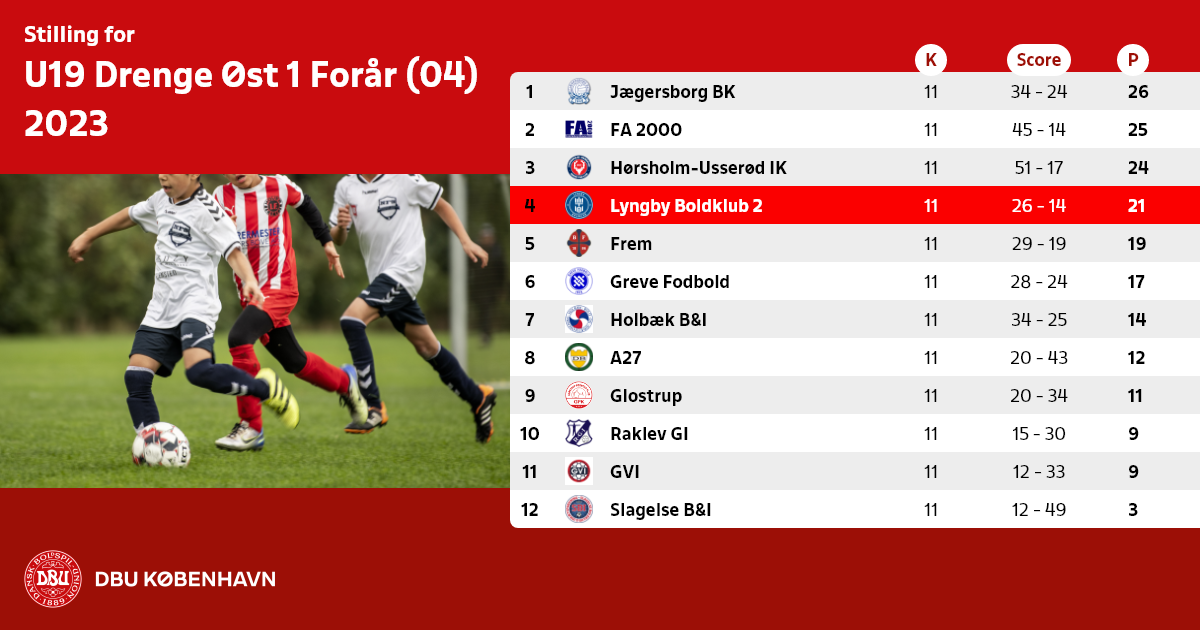 Husk hjemmekampe i weekenderne for hold under DBU København spilles på tiderne kl. 1000 – 1200 – 1400 og 16.00.