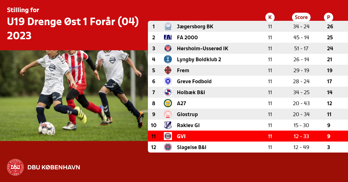 Husk hjemmekampe i weekenderne for hold under DBU København spilles på tiderne kl. 1000 – 1200 – 1400 og 16.00.