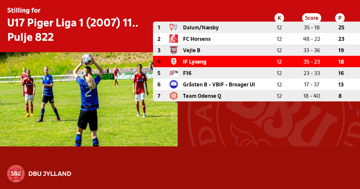 U17 Piger Liga 1 (2007) 11:11 - forår 2024, Pulje 822