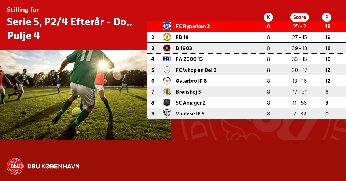 Spørgsmål omkring denne række skal rettes til DBU København på mail eller på tlf: 3927 7144
