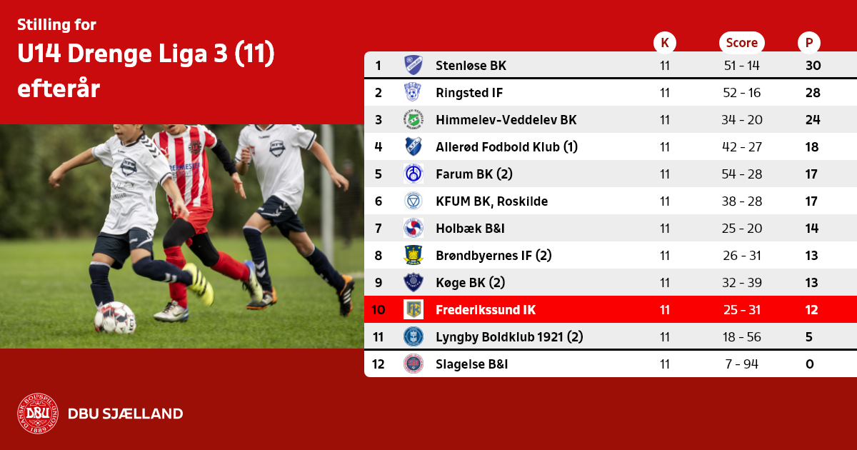 U14 Drenge Liga 3 består udelukkende af klubber uden licens og afvikles som 12-holds enkeltturnering.