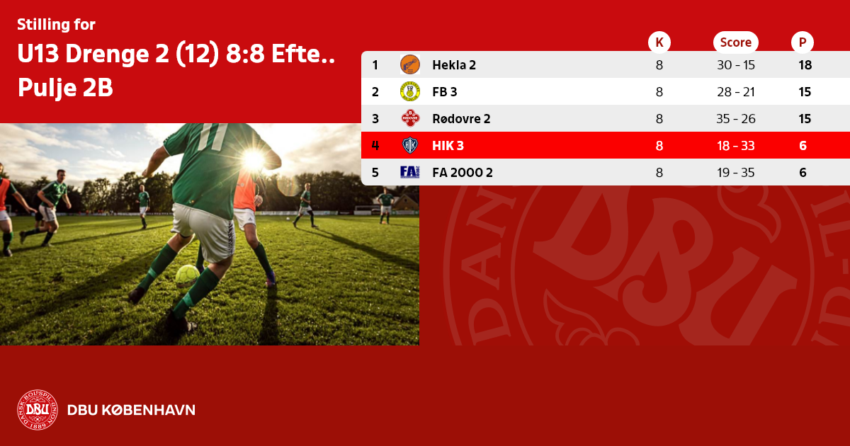 U13 Drenge 2 (12) 8:8 Efterår dommerløs, Pulje 2B