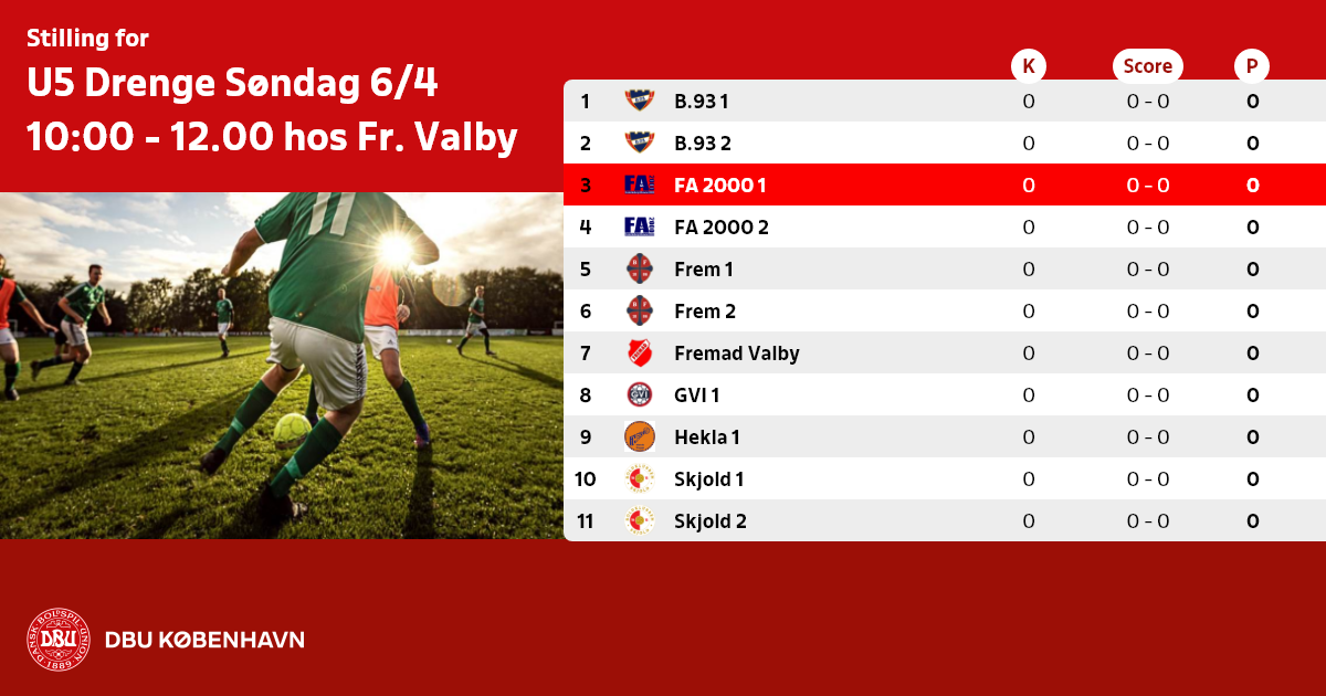 U5 Drenge Søndag 6/4 10:00 - 12.00 hos Fr. Valby