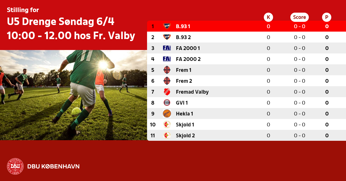 U5 Drenge Søndag 6/4 10:00 - 12.00 hos Fr. Valby