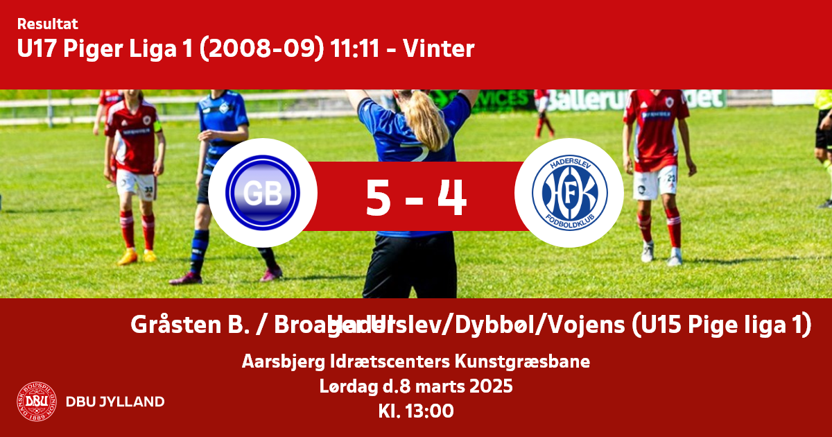 Gråsten B. / Broager UI - Haderslev/Dybbøl/Vojens (U15 Pige liga 1)